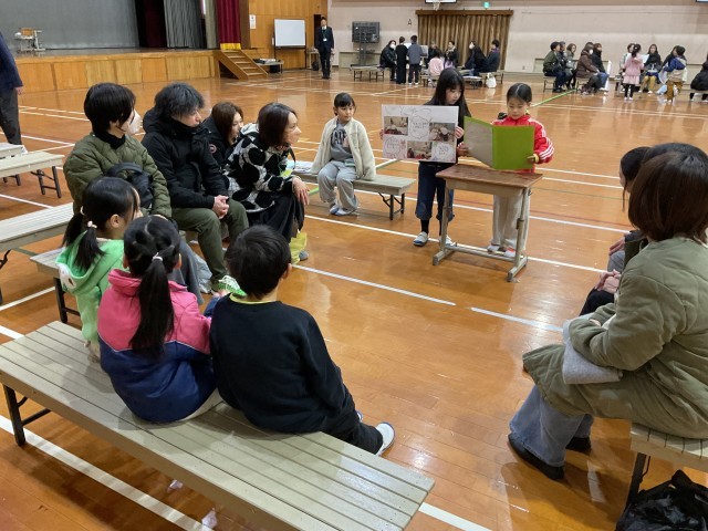 学習参観で、生活科「もっともっとまちたんけん」で学習したことを一人ひとりが発表しました。今日の学習参観では、「聞くこと」や「発信すること」、「対話を通して課題を解決すること」をめあてとしていたため、2年生も「聞いている人と対話のできる発表」にチャレンジをしました。発表の中に、尋ねる文章を入れる工夫をしたり、質問や感想に返答をする練習をしたり、準備を頑張ってきました。
