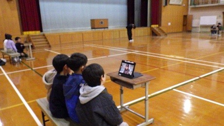 宇多野小学校の3年生と、総合的な学習の時間の学びを発表し合いました。