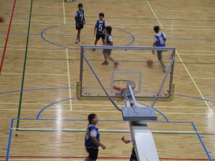 9日に西京極体育館でバスケットボールの試合が行われています。男子も女子も一勝して、次の試合を待っているところです。男子は誰もがシュートを決めています。女子もシュートがたくさん決まりました。次の試合がたのしみです。