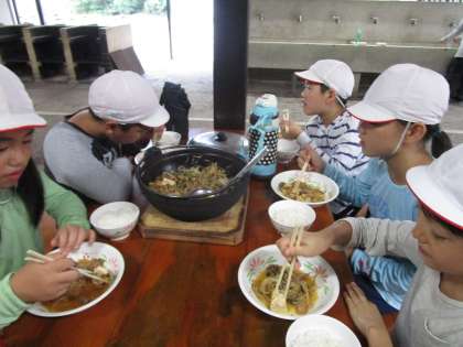 「たまねぎは洗うんですか。」「お豆腐はどうしたらいいんですか。」初めて取り組むことで相談しながらがんばっていました。