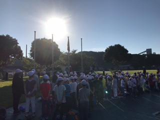 2日目の朝は6時に起床し,朝の集いを行いました。この後は裏山ラリーです。友達と協力して目標を達成することができるでしょうか。