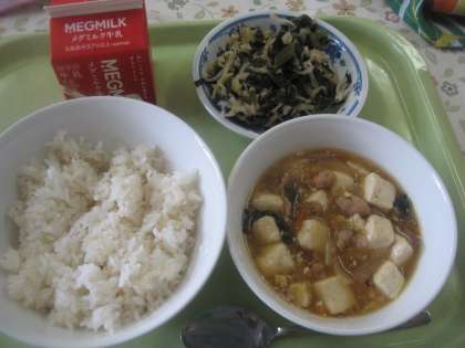 11月8日の給食は「麦ごはん、牛乳、五目豆腐、切干大根の炒めナムル」です。五目豆腐は豆腐の他に豚肉、たまねぎ、にんじん、しいたけ、チンゲン菜などの材料を豆腐がつぶれないように煮ました。子ども達は「豆腐がふわふわしておいしい。五目豆腐がごはんに合っておいしい。」と好評でした。今日は給食委員会の提案で牛乳パック詰めコンテストを行いました。どのクラスもできるだけ多くきれいに詰めました。審査を委員会活動の時間に行い、1位のクラスは13個をきれいに破れることなく詰めていました。これをきっかけに牛乳パックはもちろん、食器や食缶などの後片付けがきちんとできているかを見直すきっかけになればうれしいです。