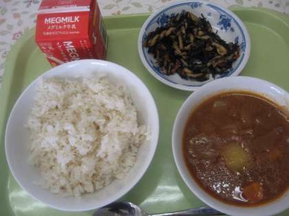 11月15日の給食は「麦ごはん、牛乳。ビーフシチュー、ひじきとマカロニのソティ」です。ひじきとマカロニのソティは今までにない組み合わせです。ランチルームの6年生に聞いてみました。好きでも嫌いでもないという子ども達が多かったのですが、「ひじきのソティとマカロニのソティと別々にしてほしい。」「マカロニはもう少しかたい方がよい。」などの意見がありました。他のクラスの子ども達もひじきのソティの方がよいという意見が多かったです。でも残っていることはほとんどなかったです。