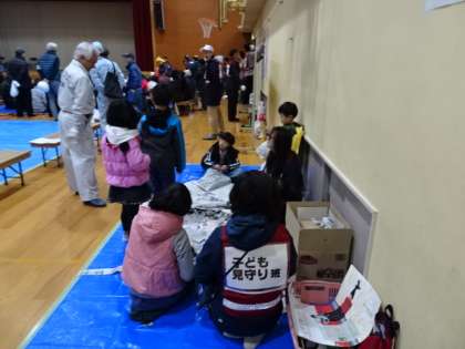 防災グッズを知ったり救護の仕方を学んだり,アルファ米の作り方,簡易トイレの作り方も地域の皆さんで教えあいをされていました。