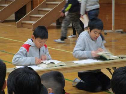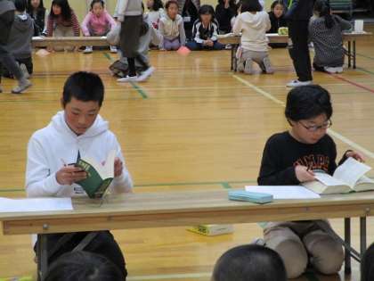 20日のお昼休みに3年以上の子ども達による校内辞書ひき大会が行われました。10問を必死に集中して辞書をひいいていました。
