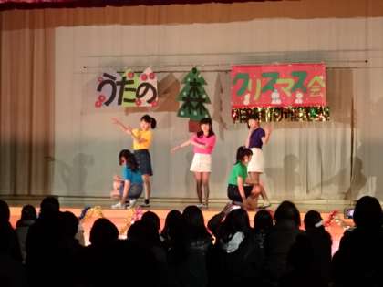 子どもたちはダンスや演奏などで楽しませてくれました。教職員もダンスと歌で参加しました。