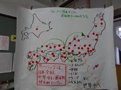 地域のティーバック工場を見学し,工場の努力や工夫について考えました。その工夫や努力は,お客さんにとっても工場にとっても,そして環境にとっても良いということが分かりました。