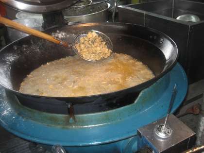 12月14日の給食は「ごはん、牛乳、いわしのカレーあげ、ほうれん草のごま煮、いものこ汁」です。いわしのカレーあげは一口に切ったさんまをしょうゆ・料理酒・カレー粉の調味液に漬け込んでから、小麦粉と片栗粉をつけて170度の油でからっと揚げました。子ども達の感想も「さんまのカレーあげがとてもおいしい。ごはんといっしょに食べるとおいしい。」「さんまのカレーあげがカリカリした食感とおいしいカレーがとてもいい組み合わせだなあと思いました。ほのかに香るカレーの香りがすごくおいしかったです。」とさんまのカレーあげの感想がとても多かったです。