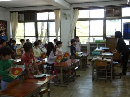 少しずつ慣れてきた小学校。国語の授業をたくさんの保護者の方に見ていただきました。