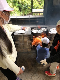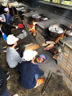 火おこしもがんばりました。おいしいカレーができるといいですね。
