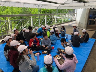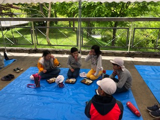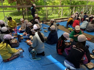 登山で疲れた後の唐揚げ弁当とリンゴジュースに大喜びでした。