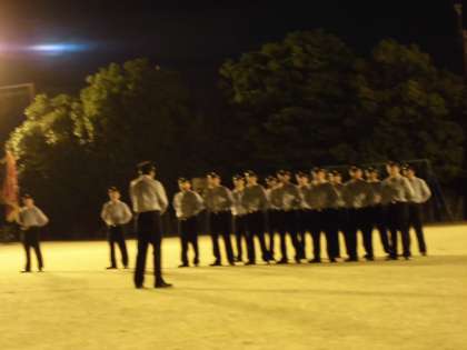昨晩,本校運動場で右京消防署や地域諸団体の代表の方々が見守る中,20日に行われる右京消防団総合査閲に向けた訓練の成果が披露されました。