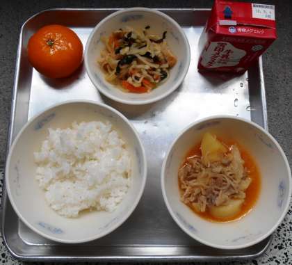 ごはん 牛乳 肉じゃが(ピリからみそ味)