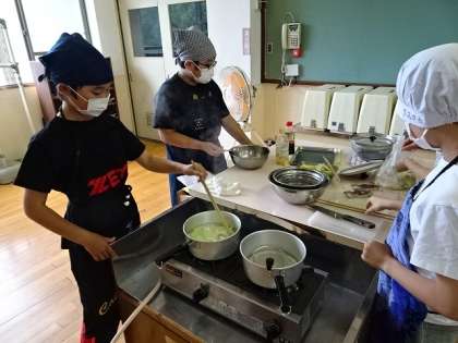 ゆで野菜でカラフルコンビネーションサラダをつくりました。友だちと協力して作りました。