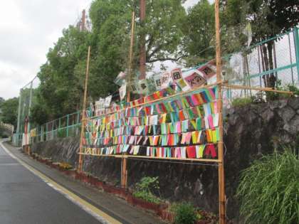 消防分団の前に子どもたちのねがいを書いた短冊が飾られています。毎年消防分団の方々にしていただいています。子どもたちのねがいが届きますように。