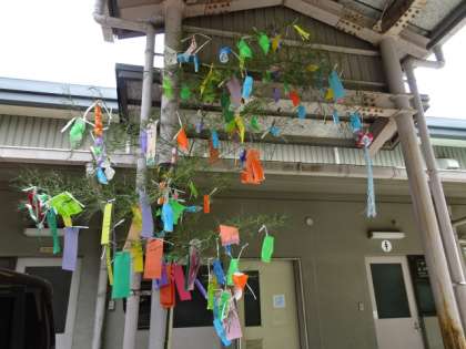 おおぞら学級の子どもたちが1年生を招待して,七夕集会をしました。笹に短冊を飾り,子どもたちも喜んでいました。
