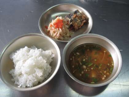 1月25日の給食は「ごはん、牛乳、さばの竜田あげ、紅白なます、味噌汁」です。1月の給食にはお正月料理がいくつか出てきますが「紅白なます」もその一つです。赤い金時にんじんと白い大根でお正月の「めでたい」気持ちを表しています。1年生の感想に「紅白なますはちょっとすっぱくて美味しかった。」と書いてありました。すっぱい味は子ども達はなかなか好きになれない味の一つですが少しずつ慣れてくれればうれしいです。さばの竜田あげも「カリカリして美味しい。ごはんと魚がよく合ってごはんが進んで美味しく食べられた。竜田あげは魚はやわらかく、衣はカリカリで美味しかった。」という感想でした。味噌汁に初めて「せり」を使いました。少し苦味があり独特の香りもありますが、「せりが美味しい。」と旬の野菜を味わっていました。