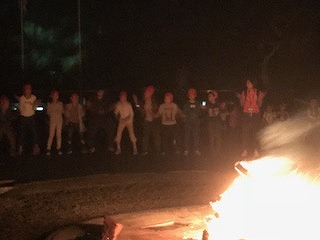 今日の最後の行事,キャンプファイヤーです。クワガタ音頭で盛り上がりました。