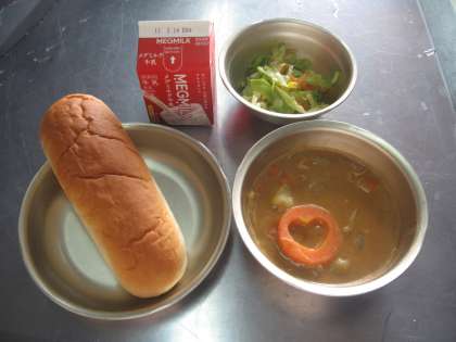 2月2日の給食は「味つけコッペパン、牛乳、チキンカレーシチュー、野菜のソティ」です。カレーはごはんとの組み合わせが多いですが、今日はパンと組み合わせました。ビーフカレーに比べると少しあっさりしていますが、大変好評でした。野菜のソティも今の季節のキャベツは少し硬くて甘いです。蒸してから炒めますが、子ども達は「野菜がとても美味しかった。ソティのキャベツがシャキシャキしていて美味しかった。キャベツが甘かった。」とちゃんと季節の野菜の味を味わっていました。