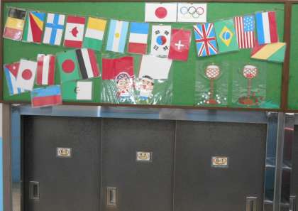 と,給食室ホールの掲示を給食調理員さんが秋バージ