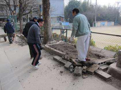 おやじの会の皆様による花壇の撤去作業が始まりました。