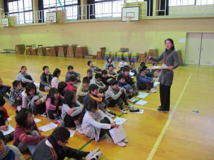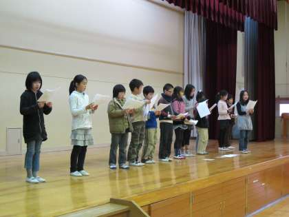 これは,体育館の舞台にたって,セリフを読んでいるところです。一回目ということで,まだまだたどたどしく,動きも全然ありませんが,舞台に立ってセリフを言うことがどんなものか,その感じくらいはわかったことと思います。