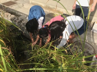 運動場の東側にある池の一つで米作りをしていました。