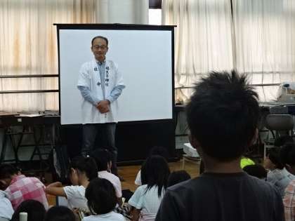 3年生は,総合の学習で地域のお祭りについて調べています。この日は地域の方にゲストティーチャーとして来ていただき,「大人みこし」についてお話を聞かせていただきました。「どうして帯の色がちがうの?」「おみこしをかついだままその場でジャンプするのはどうして?」「なぜホイットと言うの?」「なぜおみこしを担ぎ続けているの?」など,子どもたちの素朴な質問に丁寧に答えていただきました。