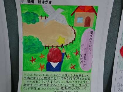 おすすめの本を絵葉書にして書きました。6年生ともなれば,紹介文の書き方や絵の表現が達者になり見ごたえがあります。