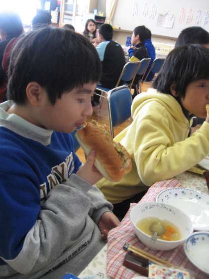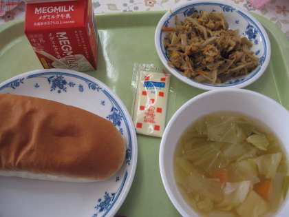 2月16日の給食は「コッペパン、牛乳、ツナごぼうサンド、野菜のスープ煮}です。ツナごぼうサンドはコッペパンにはさんでサンドイッチにして食べます。「ツナごぼうサンドはごぼうがシャキシャキして、しかもマヨネーズにも合いいい味わいになっていて美味しかったです。」と6年生がとても詳しく感想を書いてくれました。パンもしっかり食べていました。「野菜のスープ煮はキャベツ、玉ねぎ、じゃが芋、人参などが入ったボリュームのあるスープ煮です。「野菜がサクサクしていて美味しい。」という感想でした。
