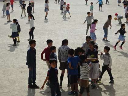 今日の昼休みにたてわり遊びを行いました。大きい学年の子がよく動いて,ドッチボールのルールを変えたり,コートを小さくしたりして小さい学年の子が遊びやすいように工夫していました。