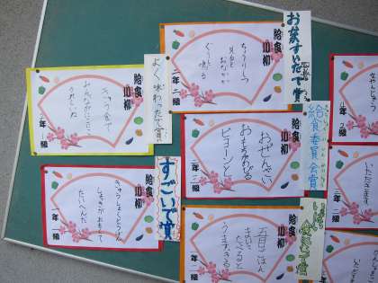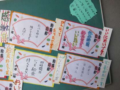 この間、豆つまみ大会だけでなく、各クラスでは給食川柳にもチャレンジしました。