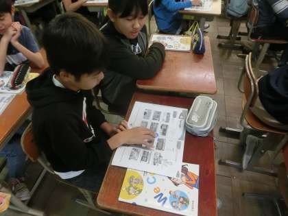 外国語活動の学習で,建物を表す表現や目的地への行き方の表現などを学習しています。今回は,英語を聞いて,指示された通りにおはじきを進めて,目的地につく活動をしました。子どもたちは,とても楽しそうに活動していました。最初のうちは近いところや単純な行き方なので,簡単に目的地にたどりついていましたが,遠いところや複雑な行き方になると難しくなってくるようでした。これから,学習を進めて,友だちを英語をつかって道案内できるようにしていきたいと思います。