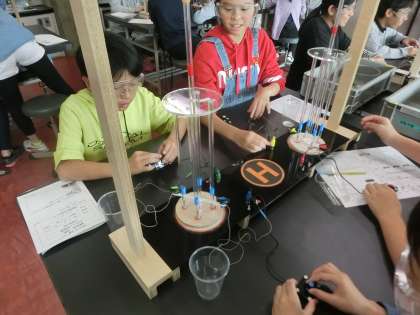 京都市青少年科学センターにセンター学習に行きました。1組は物理領域「ドローンの科学」という学習をしました。テレビなどでよく見聞きするドローンですが,それがどのような仕組み,原理で飛ぶのかということを実験を通してわかりやすく教えていただきました。プロペラの枚数と向きに秘密があり,本当はとても難しい内容なのですが,子どもたちはとても楽しそうに学習に取り組み,ドローンが飛ぶ仕組みを学んでいました。