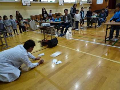 土曜学習でグライダーを作りました。紙皿を切って空気の入り口を作り,まっすぐとぶように中のクリップの位置や重さなどを工夫しました。飛距離を伸ばすために試行錯誤し,保護者も一緒に白熱していました。