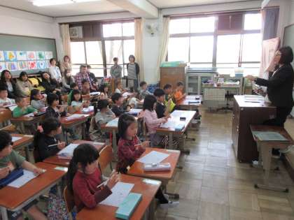 1年生は,「ていねいにかこう。」をめあてに,ひらがな「い」の学習を行いました。