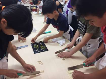 見本の通りに,生地を細く切ります。これがまた難しいのです!