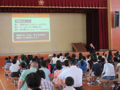 4年生は,体育館で行われた「ケータイ教室」の様子です。