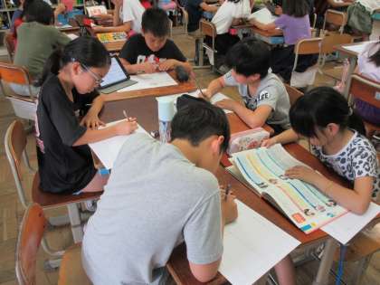 タブレットや本を使って,「どのようなボランティア活動があるのか」を調べました。