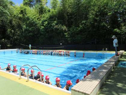 小学校初めてのプール学習なので,着替え方,並び方,準備運動の仕方等,学習のルールを丁寧に指導しました。