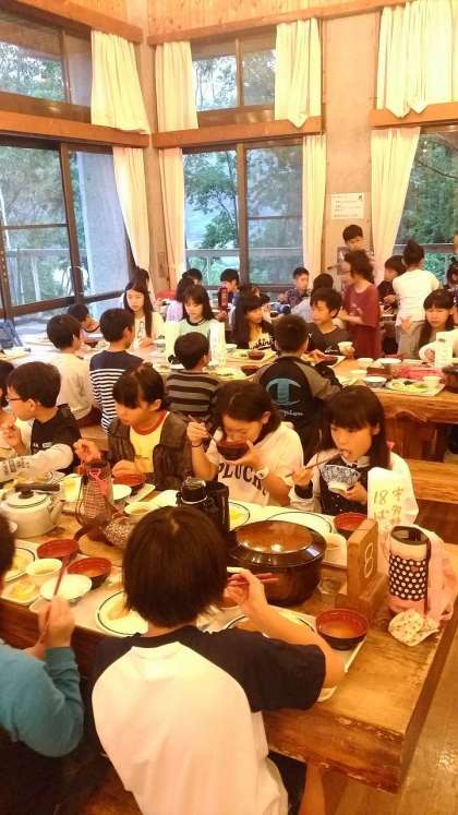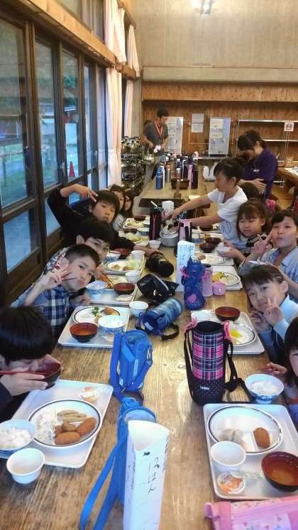 オリエンテーリングでお腹ぺこぺこです。「いただきまーす!」
