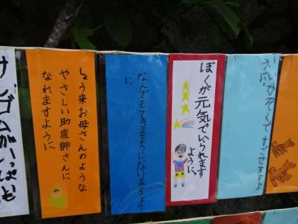宇多野消防分団の皆さんが子どもたちが書いた願い事の短冊を一つ一つ丁寧にビニール袋に入れて飾ってくださいました。