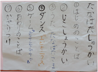 おおぞら学級は「七夕集会の計画や準備,練習を主体的に行い,1年生との交流を楽しむことができる」というめあてで,1年生は「おおぞら学級の友だちに親しみを感じる」というめあてで,交流行事『七夕集会』に臨み,ダンスやゲームを楽しみました。