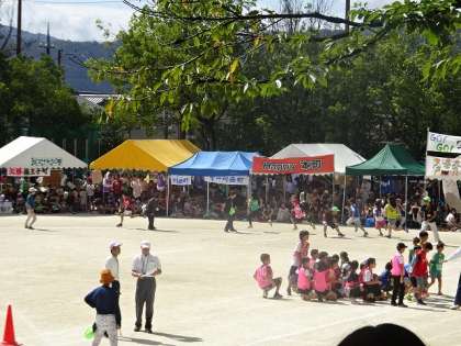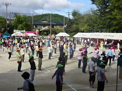 宇多野小学校で第47回宇多野学区民体育祭が開催されました。地域の皆さんが町ごとにチームワークを高めて競技を楽しんでいます。地域の皆さんのスポーツに親しんでおられる姿や仲の良さが垣間見られます。小学校の子どもたちや卒業生も活躍している姿がみられます。