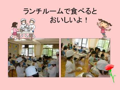 「ランチルームで食べるとおいしいよ!」とおかずをからっぽにしてくれました。