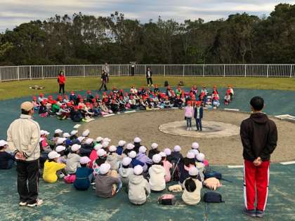 朝の集いは第四錦林小学校と行いました。校歌を歌ってお互いの学校紹介をしました。