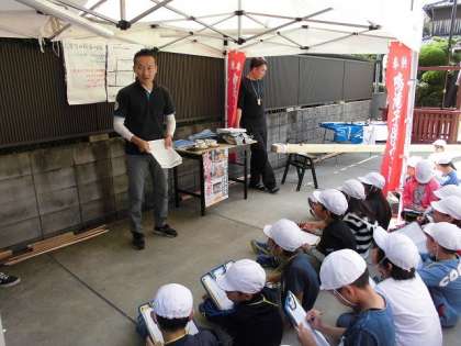 鳴滝村のほこ宿を見せていただきました。お飾りも終わって,祭りの準備万端の様子でした。おみこしのかつぎ方を体験させていただいたり,お話もたくさんしていただいたりして,祭りに携わる地域の方からいっぱい勉強させてもらいました。ありがとうございます!当日のお祭りが楽しみです。