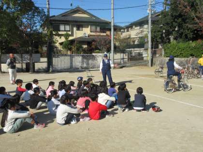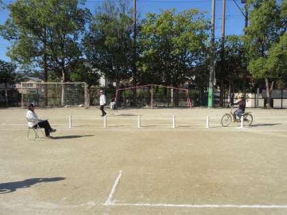 4年生が運動場で自転車免許教室を受講しました。自転車の正しい乗り方を聞いた後,実際にコースに沿って自転車を乗り進めました。今日の授業を機に,より安全に気をつけて自転車に乗ってほしいと思います。
