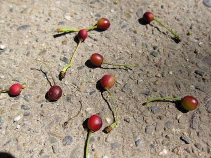 ふと足元を見るとそこかしこに真っ赤に熟れた実がドット柄をつくって広がっていることもめずらしくありません。