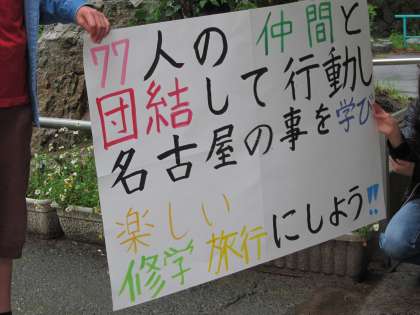 あれだけ降った雨もやみはじめ,6年生全員で元気に出発しました。